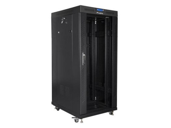 Szafa instalacyjna Rack stojąca 19" 27U 800x1000 czarna drzwi szklane LCD Lanberg (flat pack)