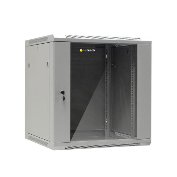 Szafa wisząca 19" Netrack, 12U/600x600mm - szary, drzwi szklane, otwierane boki