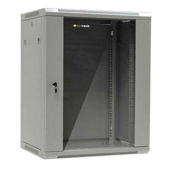 Szafa wisząca 19" Netrack, 15U/600x450mm - szary, drzwi szklane, otwierane boki