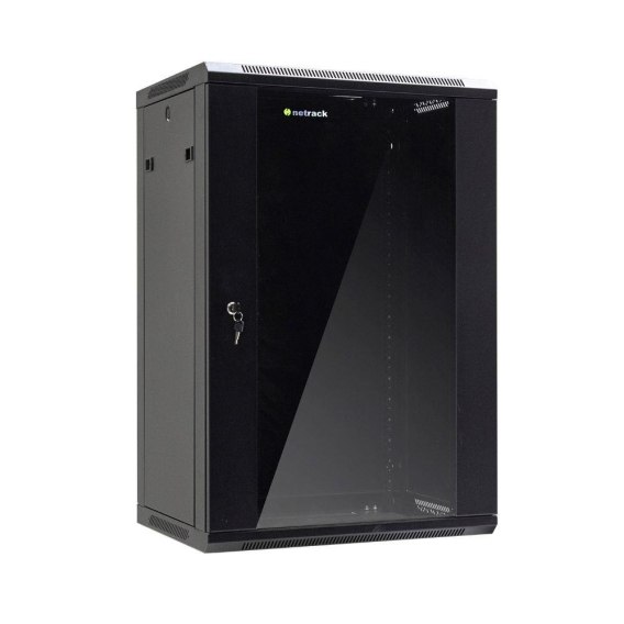 Szafa wisząca 19" Netrack, 18U/600x450mm - czarny, drzwi szklane, otwierane boki