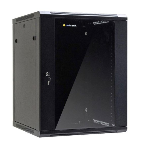 Szafa wisząca 19" Netrack, 18U/600x600mm - czarny, drzwi szklane, otwierane boki