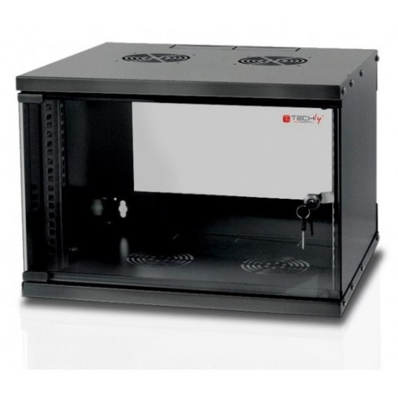 Szafa wisząca 19" o wysokości 6 U. Maksymalne obciążenie wynosi 50 kg.