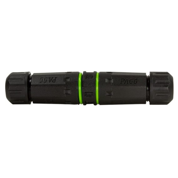 Maksymalna tłumienność wtrąceniowa: 0.2 dB, Obudowa zewnętrzna z tworzywa sztucznego PA66, 94V-2, Dławiki kablowe po obu stronach łącznika