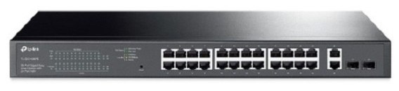 Zarządzalny przełącznik o prędkości magistrali wynoszącej 56 GB/s, wyposażony w 26 gniazd sieciowych 10BASE-T/100BASE-TX/1000BASE-T oraz dwa gniazda SFP.