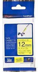 Elastyczna taśma identyfikacyjna Flexi ID, laminowana, o szerokości 12 mm i długości 8 m, tło żółte, nadruk czarny. Przeznaczona do wybranych urządzeń Brother P-touch.