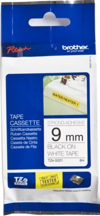 Taśma laminowana o szerokości 9 mm, o czarnym nadruku oraz białym tle. Długość taśmy wynosi 8 metrów.