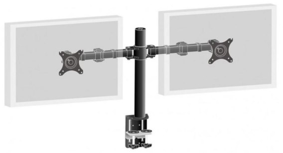 Uchwyt biurkowy, dedykowany dla 2 monitorów o przekątnej ekranu od 10 do 30-cal. Nośność: 10 kg. Regulacja wysokości: 200 - 400 mm. Regulacja kąta pochylenia: od minus 85 do plus 15 stopni. Regulacja kąta obrotu: 180 stopni. Pivot: 90 stopni. Standard VESA: 75 x 75, 100 x 100.