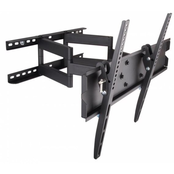 Uchwyt ścienny do montażu telewizorów i monitorów o przekątnej ekranu 23 do 55 cali. Maksymalne obciążenie wynosi 70 kg. Zgodny ze standardem VESA: 50 x 50, 75 x 75, 100 x 100, 200 x 100, 200 x 200, 200 x 300, 300 x 300, 400 x 200, 400 x 300, 400 x 400. Możliwość regulacji kąta pochylenia, obrotu oraz odległości od ściany.