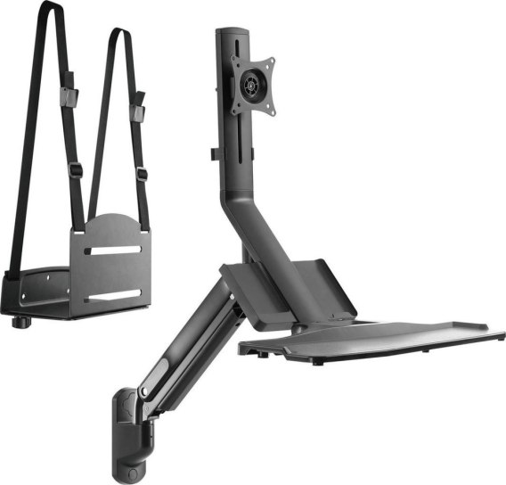 Uchwyt do monitora, klawiatury oraz komputera stacjonarnego.