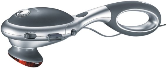 Płynna regulacja intensywności masażu, Czas masowania jednej części ciała 3 min., Powierzchnia Soft Touch, Moc 22 W, 2 wymienne nasadki masujące (nasadka miękka, nasadka z wypustkami), Możliwość odłączenia rączki, Maksymalny czas jednorazowego użycia aparatu 15 minut, 2 funkcje: masaż wibracyjny, masaż wibracyjny + lampa rozgrzewająca
