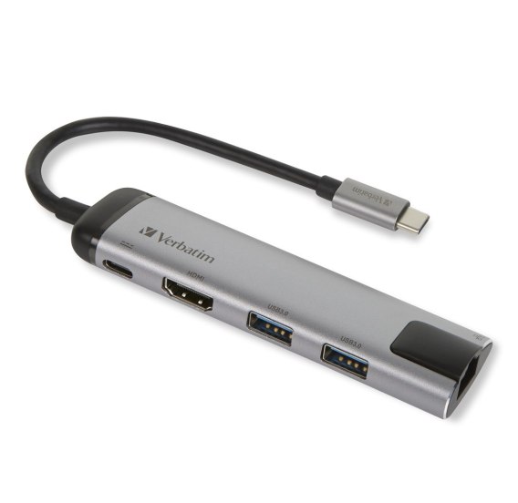 Verbatim 49141 stacja dokująca USB 3.2 Gen 1 (3.1 Gen 1) Type-C Czarny, Srebrny