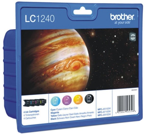 Multipack z czterema wkładami atramentowymi w kolorach błękitnym, purpurowym, żółtym, czarnym o wydajności 600 stron przy pokryciu 5%.