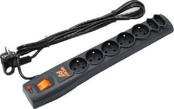 Listwa zasilająco-filtrująca z zabezpieczeniem przeciwprzepięciowym siedmiu urządzeń (pięć gniazd z bolcem i dwa gniazda płaskie). Posiada system ochrony przeciwporażeniowej oraz system porządkowania przewodów.