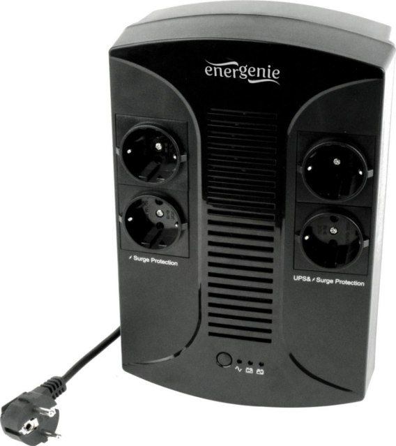 Zasilacz awaryjny o mocy wyjściowej 850VA wyposażony w 4 gniazda wyjściowe i port USB do zarządzania. Posiada kwasowo-ołowiowy akumulator 12 V/8 Ah. Architektura line-interactive.