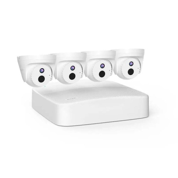 Informacje dodatkowe: 1/3" CMOS sensor, obiektyw 4mm F2.2, Zdalne sterowanie, DDWR, kompresja podświetlenia, redukcja szumów, HDD Storage:, - 1x SATA 3.0 interface, - Up to 10 TB capacity for each HDD, HDMI Output:, - 1-ch, 4K (3840 × 2160 )/30Hz, 1920 × 1080/60 Hz, 1280 × 1024/60Hz,, 1280 × 720/60 Hz, VGA Output:, - 1-ch, 1920 × 1080/60Hz, 1280 × 1024/60Hz, 1280 × 720/60Hz,, HDMI/VGA simultaneous output, Smart Alarm: Motion Detection, Human Detection, Video Tampering, Certyfikaty: CE, RoHS, FCC, UKCA, Zawartość zestawu:, - 1x PoE Network Video Recorder, 1x Power adapter (51V 1.25A), -1x Screw kit (NVR), 1x Screwdriver, 4x Mounting Template, - 4x PoE Camera, 4x Screw kit (camera), - 1x HDMI cable, Ethernet cable (1x 1m, 2x 18m, 2x 30m)