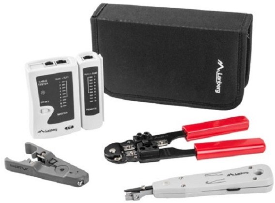 Uniwersalny zestaw narzędzi do budowy sieci LAN marki Lanberg.